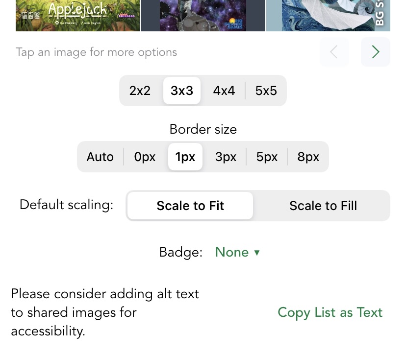 Tap “Copy List as Text” to copy the list of games as text to your clipboard. You can paste this in the alt text when sharing the image on social media.